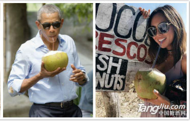 椰子水的风是从ins的时尚博主和欧美明星那里刮过来的,在崇尚健身的欧美国家,椰子水风靡起来也是必然了。超级自律的健身狂魔奥巴马,看到椰子水也是来者不拒。