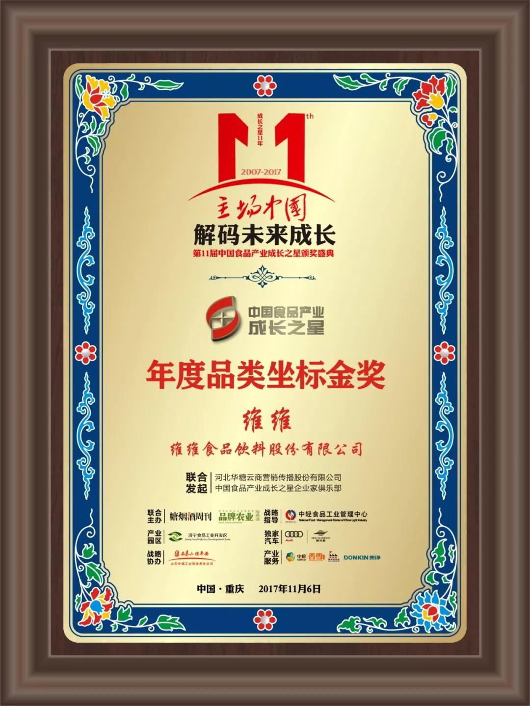 此外,在有着食品界奥斯卡之称的第十一届中国食品产业成长之星评选活动中,维维液态豆奶系列更是摘得年度品类坐标唯一金奖,彰显了维维豆奶强大的品牌力与影响力。