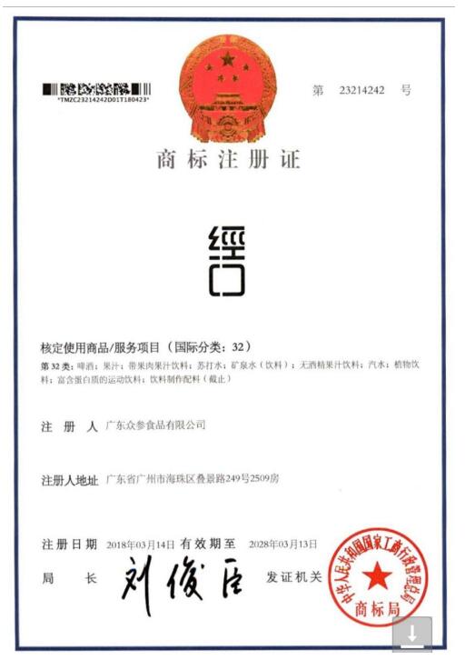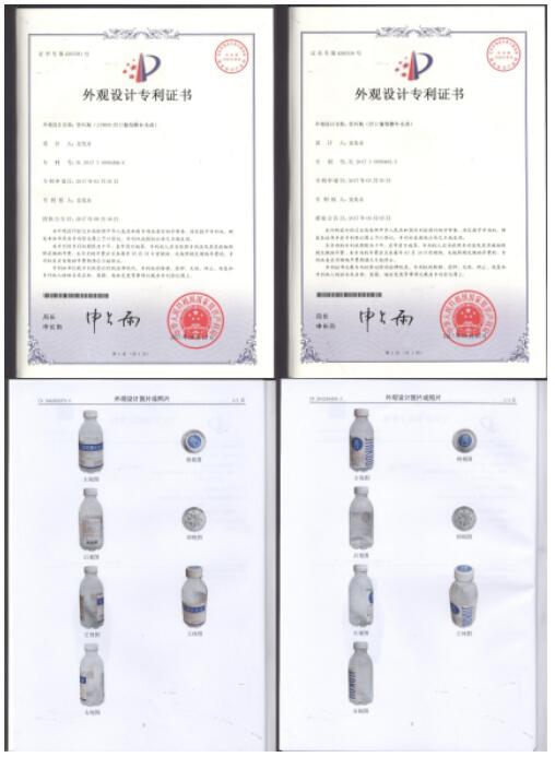 经口葡萄糖补水液:2016年正式立项!经过无数次的口感测试和市场调查,最终确定13%的葡萄糖含量和选用输液瓶瓶型!2017年3月向国家专利局正式提交外观专利申请设计并申请保护!同年9月取得国家专利局颁发的的经口葡萄糖补水液外观专利证书!