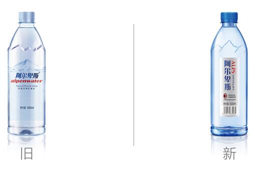 瓶体由原来的透明色向阿尔卑斯的标志色彩—星空蓝趋近,更加深沉厚重。同时,如同瓶装啤酒或葡萄酒采用的深绿色和深棕色原理一样,加深后的蓝色瓶体能阻挡更多的光进入瓶内,保证产品的品质更加稳定,口感更加润滑。