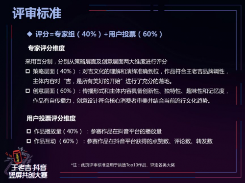以下是“王老吉·抖音竖屏共创大赛”的参赛方式、评审标准以及奖项设置。诚挚邀请感兴趣的创作者积极参与。