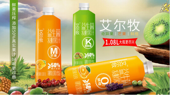 除此之外,艾尔牧发酵果汁采用简约整洁的外形风格,黄金比例的分割瓶身。化繁为简,务求最直观地将产品展现出来。整体风格清新脱俗,令人过目不忘。以最原始、最质朴的方式吸引消费者的注意力,激起消费者的购买欲。其中1.08L大瓶装的规格,更是成为餐饮宴席、亲朋聚会不可或缺的佳品。