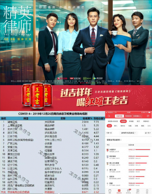 (在播出首周的收视数据报告中,《精英律师》以高达1.5%的收视率在短时间内冲上榜单第二)
