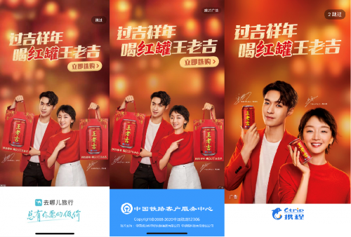在春节抢票高峰期,王老吉携手12306、携程、去哪儿三大头部出行APP开启强势霸屏模式,在新年前夕以吉运好兆头率先抢占营销高地。