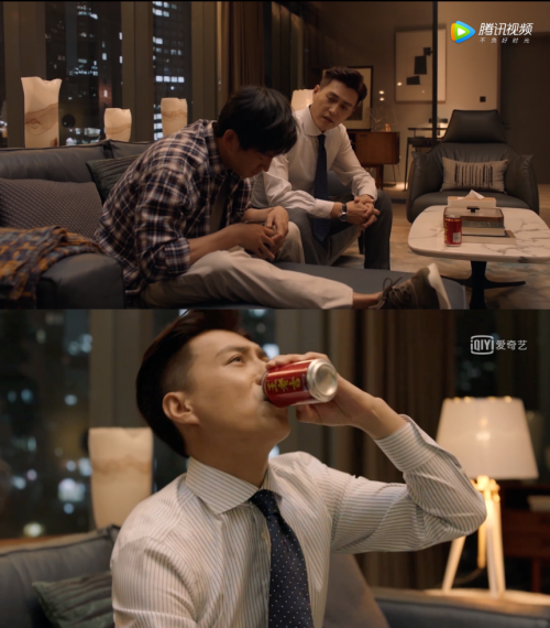 靳东饰演的金牌律师罗槟回到家里,从冰箱里拿出王老吉,一罐给前姐夫冀遇解酒,一罐留给上火的自己。