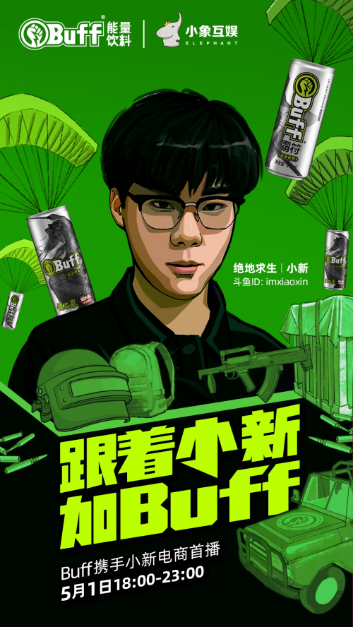 5月1日的直播,是Buff与小象互娱的第一次合作,电竞主播和能量饮料这对CP,将会和游戏玩家擦出什么火花?也是食品饮料行业需要关注的话题,就让我们一起期待小新(斗鱼ID: imxiaoxin)!一起期待Buff!