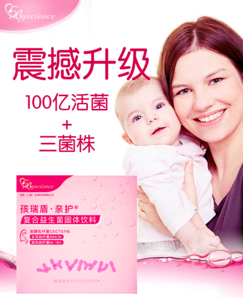 百施生物是森永乳业益生菌菌株在中国大陆的独家授权代理商。日本森永乳业在益生菌双歧杆菌上不断革新,持续推动大健康行业的发展,并结合百施生物在中国本地的渠道能力,源源不断地为中国健康消费群体带来更多的益生菌菌株及功能性产品。孩瑞盾是百施生物所拥有的系列益生菌产品的品牌,孩瑞盾利用天然来自于人体的独特专利益生菌菌株开发了一系列的产品,子品牌包括亲护、安护、紫悠、倍护等诸多系列。其中亲护选用的是日本森永乳业的益生菌菌株长双歧杆菌BB536、短双歧杆菌 M-16V以及转化国内生产的发酵乳杆菌CECT5716。三株人体来源菌株均得到美国FDA GRAS INFANT的安全认证,每条添加的100亿活菌,安全且有效,适合备孕、怀孕和产后妈妈以及宝宝,可以同步调整妈妈肠道、乳腺和乳汁微生态,帮助早期建立胎儿及婴儿肠道微生态,并抵御外来病原菌入侵,保护肠道免受细菌感染,提升人体免疫力,助力母婴健康,中国消费者健康消费的多维度需求得到了进一步满足和释放