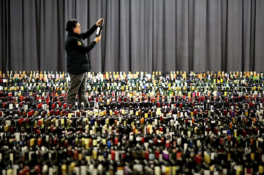 一年一度的国际葡萄酒挑战赛(International Wine Challenge)于4月21日在英国伦敦举办。该赛事由英国葡萄酒杂志 《Wine International 》举办,号称“世界规模最大的葡萄酒竞赛”。图为一位评委在挑选参赛样酒,评委们将对来自全球各地的超过10,000瓶葡萄酒进行品评。