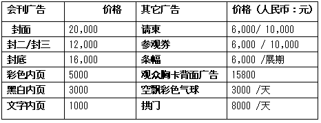●展览空场地(空场地最少租用36平方米):国内企业:1000元人民币/平方米,合资企业:1100元人民币/平方米;外资企业:300美元/平方米;