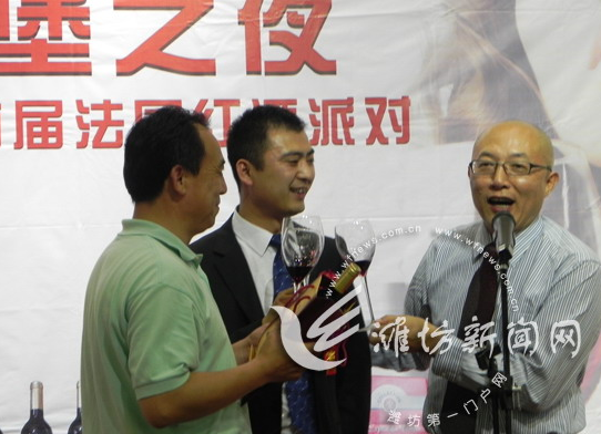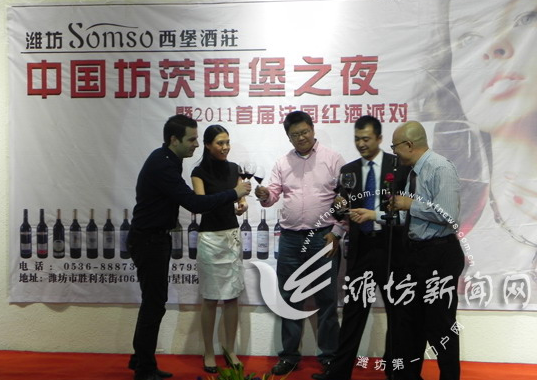 5月16日,中国坊茨西堡之夜暨2011首届法国红酒派对在坊茨小镇举行,潍坊西堡酒庄董事长刘新政、西堡酒庄总