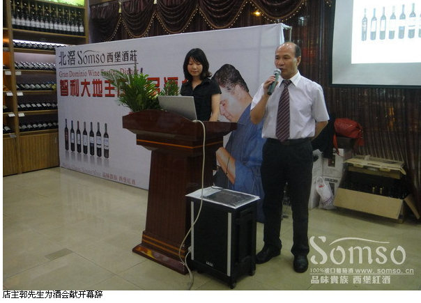 2011年5月28日晚上,顺德区北滘西堡酒窖举办了智利大地主酒庄系列葡萄酒品酒会。大地主酒庄的庄主阿尔弗雷德先生、西堡酒庄董事长裘立新先生和两位来自永兴西堡专卖店的客人作为特邀嘉宾来到现场。酒会吸引了近70人入场,他们坐满了酒窖的上下两层。每个桌上都准备了丰富的下酒美食。在西堡酒庄国际采购部经理陈文丽女士的翻译下,阿尔弗雷德先生详细介绍了他的酒庄。随后他又亲自点评了当晚的四款用酒:大地主霞多丽白葡萄酒2009年,大地主梅洛干红葡萄酒2009年,大地主佳美娜干红葡萄酒2009年和大地主红城堡干红葡萄酒2005年。阿尔弗雷德先生用图文并茂的方式,风趣幽默的语言向来宾讲解了每一款酒的故事,观众也报答阵阵掌声。每到中间的休息时间,酒会都设置了有奖问答活动,获奖的酒都会有阿尔弗雷德先生的签名。酒会在热烈,欢乐的气氛中进行着,三个小时在不知不觉中就过去了。嘉宾临走时,北滘西堡酒窖店主郭先生还为他们送上精美的礼品。
