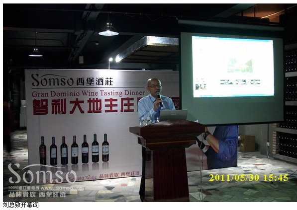 2011年5月30日下午三点,西堡酒庄总部地下酒窖举办了智利大地主酒庄系列葡萄酒品酒会。安静幽雅的地下酒窖再次迎来热闹生动的活动。酒窖里三张巨大的实木品酒桌上摆满了高脚杯,美酒和美食。嘉宾也能随时阅读放在四围的报刊。这些报刊都是西堡酒庄自办的,让嘉宾在品酒的同时也能学习更多葡萄酒知识。这次酒会阵容庞大,由酒庄总经理刘辉先生担任司仪,酒庄董事长裘立新先生担任翻译,特邀嘉宾智利大地主酒庄庄主阿尔弗雷德先生担任主讲。相信大家对此位先生已经很熟悉,他的中国的短短时间里走南闯北,在各个西堡专卖店举办品酒会。此时,地下酒窖座无虚席,嘉宾迫不及待地看着他们。酒会开始了,阿尔弗雷德先生详细介绍了他的酒庄。通过PPT,嘉宾们一睹智利酒庄的美好风光。