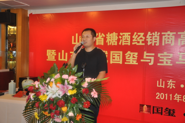8月12日,四川泸州华夏国玺酒业有限公司在潍坊市召开了山东省糖酒经销商高端发展战略座谈会暨山东区域国玺与宝马有约活动启动发布会。与会代表对酝酿十年的尊尚极品国玺酒给予了高度评价。国玺酒所彰显的非凡的品牌内涵及所推出的“国玺与宝马有约”活动,成为山东省2011年秋季糖酒会一个闪耀的亮点。