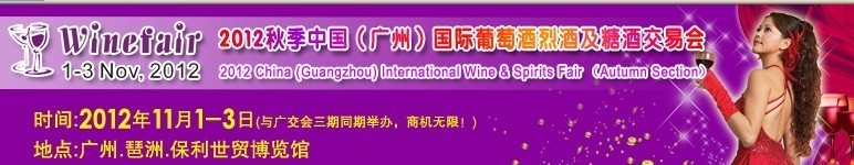 2012年中国广州国际葡萄酒烈酒及糖酒交易会(简称winefair)由中国广州国际贸易促进委员会广东省委员会批准,广州福亚展览有限公司承办,是一个国家级的酒展。将在亚洲久负盛名的广交会第三期同期举行,11月1号郑重拉开帷幕,该展会一直以来得到各个政府部门的支持,同时得到国内外行业协会,商会的支持,西班牙商会率先组织西班牙企业组团参加,在展会期间将组织一系列的活动。