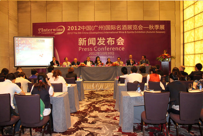 10月30日上午,“中国(广州)国际名酒展(英文简称:Interwine)”主办方广州科通展览公司在四季酒店就即将开幕的“2012中国(广州)国际名酒展—秋季展”举办了一场高规格的新闻发布会,希腊驻广州总领事,阿根廷驻广州副总领事,西班牙驻广州商务领事,美国驻广州农业领事,智利驻广州商务领事,西班牙卡斯蒂利亚拉曼恰葡萄酒基金会海外主席,中国法国工商会,意大利优质葡萄牙联盟、广东省商业联合会执行会长、美国十六区酒业总裁等20位中外领导嘉宾出席。