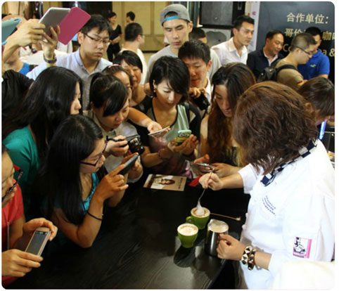 在这场咖啡业内精英和咖啡爱好者都不容错过的交流舞台上,到访嘉宾、坐镇评委以及现场主持人不断向场下观众介绍咖啡知识和咖啡制作技巧,将咖啡的醇香不仅留在口中,更融入品尝者心中。与此同时,时尚精致的3D立体拉花秀也如期举办,在咖啡师魔幻般超高技艺的操纵下,一杯杯立体拉花作品神奇诞生,使得现场闪光灯不断,可谓赚足到访观众的眼球。