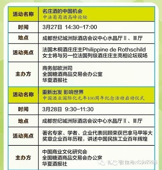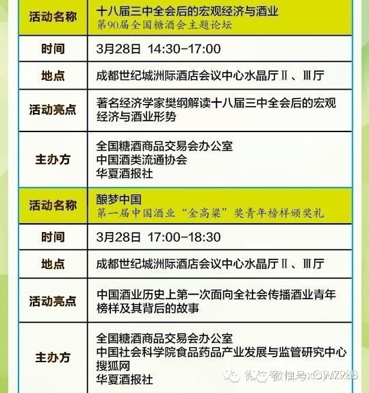 为了方便大家在春季糖酒会期间能够科学安排日程,现将全国糖酒会办公室、华夏酒报等权威部门联合主办的权威活动指南发给大家,大家可以有选择性地参加活动。