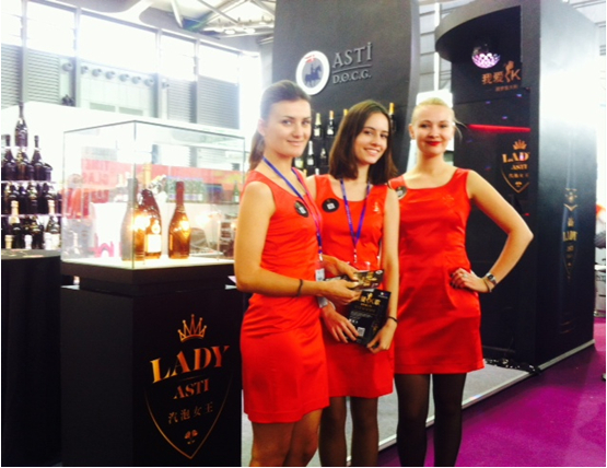 2014年SIAL CHINA 2014即第十五届中国国际食品和饮料展览会在上海新国际展览中心顺利举行, 来自意大利的起泡酒品牌Lady ASTI汽泡女王在N1-C100展区中也如火如荼的举办着展会。这是一款我十分确定国内很多女孩子会喜欢的葡萄酒,自从1993年晋级为DOCG后,Asti就必须为100%Moscato Bianco(在法国是Muscat Blanc à Petits Grains)酿造,这个异常芳香的品种是Asti受欢迎非常重要的原因。