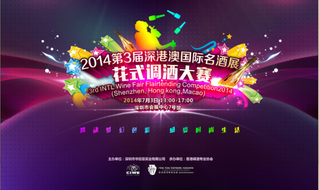 第3届深港澳国际名酒展将于7月2日-5日在深圳会展中心隆重举行,为了建立企业与调酒师之间的纽带,搭建优秀调酒师展示自我、同台竞技的平台,7月3日下午13:00-17:00,主题为“舞动梦幻色彩,感受时尚生活”的花式调酒大赛,将在会展中心7号馆,给你一个梦想的舞台!欢迎国内外调酒界专业或非专业人士前来鹏城论酒!