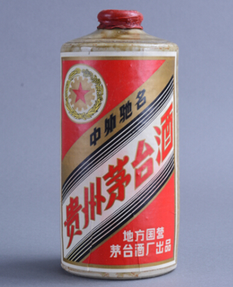 矮脖,瓶口特别矮,俗称“短脖口”,这一阶段的茅台酒瓶身仍是白色土陶瓶,瓶口特别矮,俗称“短脖口”;也是用木塞封瓶口,外加一层红色塑料膜,外有棉纸包装;商标为飞天牌。为70年代出产之土陶瓶,区分于当时其它品种,为国宴供酒。