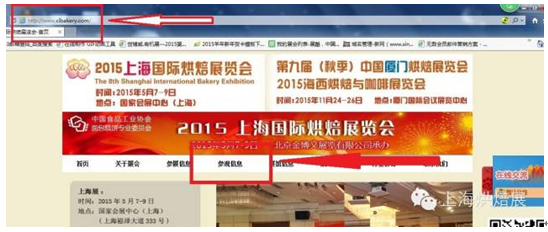 登陆2015上海国际烘焙展览会官网www.cibakery.com,点击菜单“参观信息”→“观众注册”