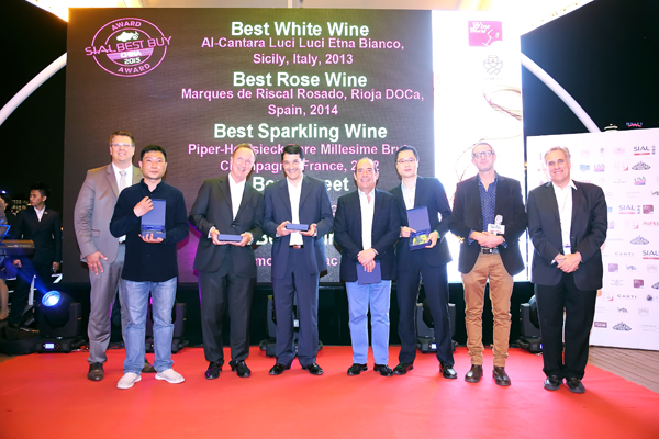 本届中国国际葡萄酒及烈酒品酒会中,超过一半的参展商送选了葡萄酒参赛,共评出10个Best Buy大奖、9个荣誉奖和1个展商特别奖。颁奖仪式于5月7日晚在黄浦江邮轮船长5号上举行,包括高美爱博集团SIAL集团常务董事Nicolas TRENTESAUX、美国驻华使馆农业处公参邵亚伦、葡萄酒大师Tim WILDMAN 等400个展商、专业观众、贵宾及媒体参加了晚宴。