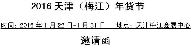 2016梅江(天津)年货节由天津诚尚优美广告有限公司承办,充分利用媒体的资源优势以及宣传优势,借助天津知名电视台、广播电台、报纸、公交车车载及车体广告、天津梅江会展中心官网及其官方微信六大优势媒体平台,实现天津市受众的无缝隙覆盖,保证本次展会的现场人气。