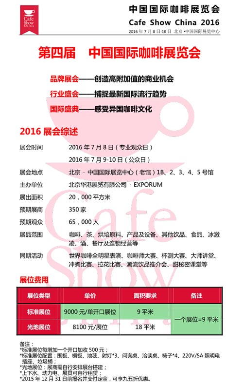 首页展会资讯展会新闻 展会新闻 2016中国国际咖啡展 中国糖酒网 2015-11-25 09:05 展会新闻 上一篇第六届中国(北京)国际酒店用品展览会 上一篇法兰克福展览有限公司概况法兰克福展览有限公司是全球规模最大的展览主办机构之一。集团迄今已在全球设有29家子公司及约57个国际销 相关文章 2021上海国际食品和饮料博览会,春耕·冬食与您年末共聚美食博览 第十一届烟台国际葡萄酒博览会开幕 2018莫斯科国际食品展览会开幕 2018第十五届中国(青岛)国际食品博览会 展后报告 重磅!中秋重大商机尽在2018山东临沂国际糖酒会 广州国际健康管理展9月举行,海外医疗热度不减 2018第十一届安阳国际糖酒会全面启动招商招展 安阳糖酒会线下宣传走进安阳航展系列活动 金秋11月,安阳国际会展中心将迎接一场大会盛宴... 2018安阳国际糖酒会线下强势宣传走进“2018全国食品博览会”