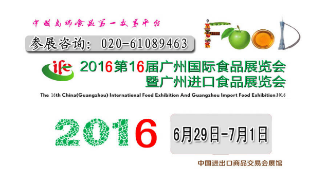 据悉,备受世界瞩目的2016第16届中国广州国际食品展暨广州进口食品展览会即将于2016年6月29日-7月1日在中国进出口商品贸易会展馆如期隆重拉开帷幕,组织单位秉循“观众就是展览生命”的理念。中国广州国际食品展览会有几大展览区域:进口食品展区、营养健康食品展区、有机食品展区、饮料饮品展区、酵素展区、休闲特色食品展、食用油展区、葡萄酒展区等...,将有来自世界40多个国家及地区相关行业2000多家企业参展,观众数量突破70,000人次,为当地经济发展起着重要的促进作用,是政府相关职能单位重点支持的展会项目之一,更是众多知名食品厂商热衷参与的食品展览盛会! 盛况空前,创历届之最。届时将云集国内外诸多食品领袖行业加盟,携主打产品闪耀登场,同台竞技,共续写大健康展览会华章。开启焕然一新的食品时代,感受无与伦比的视觉盛宴,助推引领食品行业的快速发展,愿为广大参展商开拓市场保驾护航。会展组委会办公室:020一6108-9463 赖强。艺帆展览有限公司。