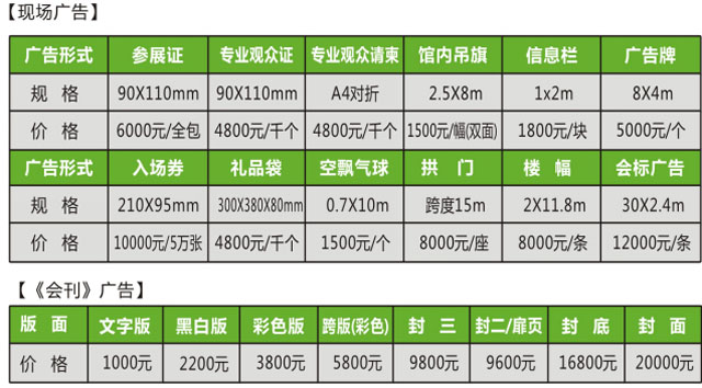 注:1、现场广告由组委会统一确认协调安排,广告画面设计由参展企业提供;