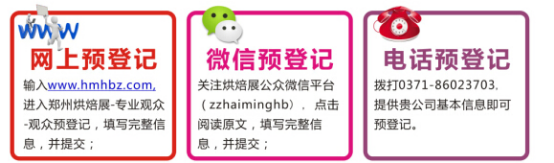 ◆微信回复:添加关注烘焙展官方微信(zzhaiminghb),并回复:姓名+手机号+邮箱,并填写回执。