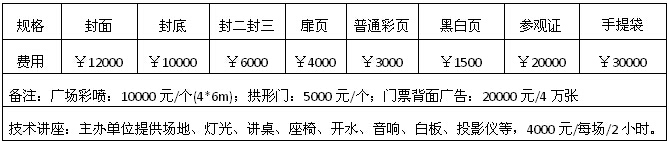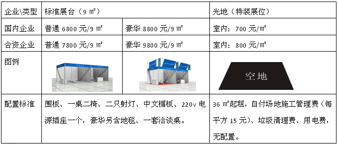 四、参展费用 (注:双向开口展台加收1000元人民币的角位费)