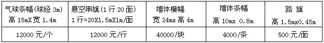 第二部分:配套宣传广告价目表