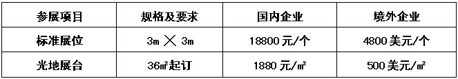 标准展位费用包括:场地费、2.5米高围板、咨询桌一张、椅子两把、展位照明、220V电源插座(限500W以内用电)、楣板、保安服务、展位清洁服务、会议资料、门票等。