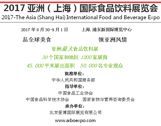 2017亚洲(上海)国际食品饮料展览会(简称:Cipfc China)是由中华人民共和国商务部批准,中国食品科学技术协会,国家食物与营养咨询委员会,中国食品工业协会,爱博展览联合发起。现已成为亚洲最大、国内最专业的食品饮料行业贸易洽谈采购对接盛会,Cipfc China每年定期在北京、上海两地巡回举办,属于食品行业例会。