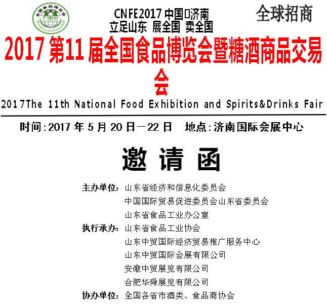 为推动中国糖酒食品行业快速发展,2017年5月继续在济南国际会展中心举办“2017第11届全国食品博览会暨糖酒商品交易会”,本届交易会不论规模和档次都将突破历届之最,欢迎广大厂商前来参展、参观!