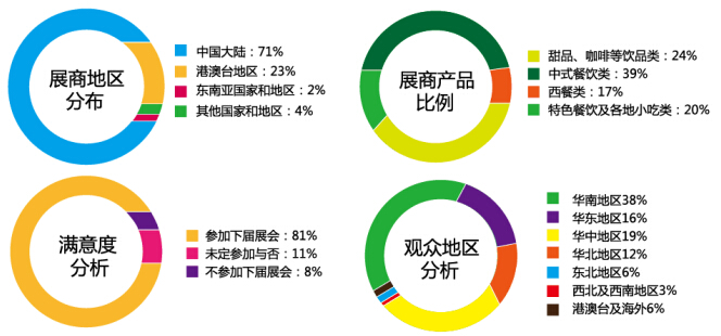 展会创建以来,已为36万投资创业者、3500多个餐饮连锁品牌提供了优质的对接服务。当中不乏以下知名品牌:味千拉面、万岁寿司、斗牛士、天母蓝鸟、十秒到、炊二哥火锅、可麻可辣、吉阿婆、棒子桂林米粉、刘福记、韩舍餐饮、森普瑞斯、汆悦麻辣烫、斗腐倌、REMICOME、麻辣空间、虾贝勒、旺角亭、木岚饮品、百悦集团、牛状元、ALICHICKEN、米多面多、皇茶天下、古时候茶饮、银祥集团、大鼓米线、正新鸡排、甘茶度、黑泷太郎、极诺咖啡、瑞蜜可、Thank u mom、纽奇披萨、爷茶、传奇冒菜、鱼满塘······等