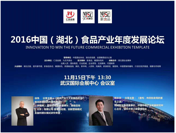 1、年度论坛,解析市场。11月15日下午 “华中(湖北)食品产业年度发展论坛”将在武汉国际会展中心五楼友好宫与武汉糖酒会同期举行。活动由新食品糖酒快讯网和仁创会展联合组织,围绕湖北食品行业现阶段发展存在的主要问题和困难。深入探讨行业新路径。邀请的重要演讲嘉宾有国内顶级咨询专家黑格咨询董事长徐伟,演讲主题是《酒类十大发展趋势及地方名酒的四大破局路径》观峰咨询董事长杨永华,演讲主题是《重构,传统批发商的重生之道》,同时邀约到会的厂商代表有稻花香、白云边、三峡酒业、枝江、黄鹤楼、关公坊等湖北地区知名酒企。良品铺子、仟吉食品、周黑鸭、统一等著名食品企业。到会的经销商预计超过1000人。活动当晚还将举行盛大的晚宴。论坛盛况空前、行业人士齐聚。是华中地区行业经销商年度的一次盛大聚会。