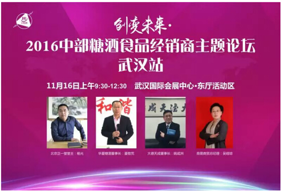 3、创变未来·消费升级时代下经销商新生战略与升级路径。2016糖酒食品经销商主题论坛将在11月16日上午在武展会现场举办。大会邀请了正一堂咨询董事长杨光,武汉华夏糖酒总经理夏敬荒、襄阳大德天成董事长姚成洲、钟祥鼎晟商贸总经理吴娅琼分别代行业权威及省、市、县级经销商交流经销商创新升级之路。