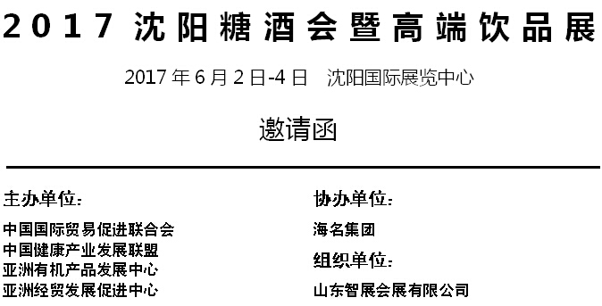 2017沈阳糖酒会暨高端饮品展将于2017年6月2日-4日在沈阳国际展览中心举办,本次展会汇聚进口名酒、国内名酒、高端饮品、进口食品、休闲食品,为企业搭建贸易合作、提高企业形象、推广品牌化市场、促进行业技术交流与合作的平台。