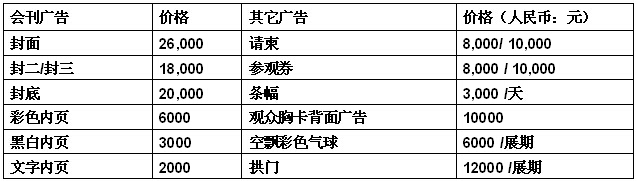 ●标准展位:9平方米(3mx3m)国内企业15800元人民币/个;合资企业/特装修标准展位16800元人民币/个;境外企业: 3000美金/个;双开口展位加收10%费用;展览空场地(空场地最少租用36平方米):国内企业:1180元人民币/平方米,合资企业1200人民币/平方米,外资企业:300美金/平方米;