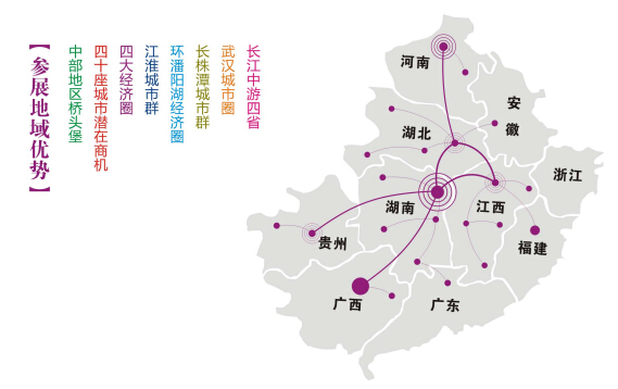 1、湖南作为中国东部沿海地区和中西部地区过渡带、长江开放经济带和沿海开放经济带(简称“一带一部”)国家战略的结合部,承东启西,连南接北,正成为中国经济主轴的新亮点和商贸物流新中心。辐射了涵盖了长江中游四省武汉城市圈、长株潭城市群、环鄱阳湖经济圈、江淮城市群,四大经济圈的40座城市潜在商机不可估量。