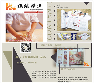 作为展会重要的传播渠道,同时也作为对外合作媒体。深受行业人推崇。2017《烘焙精选》全新蜕变,从会刊转向杂志,同时面向行业全面征集企业软文、制作技巧、流行趋势、广告等素材,希望烘焙从业人事及爱好者积极参与,广告软文收取一定费用外,其余版块酌情给予物质或现金奖励!还有机会获取现场参观礼券,到2017郑州、西安、成都烘焙展会参与活动及论坛提名!
