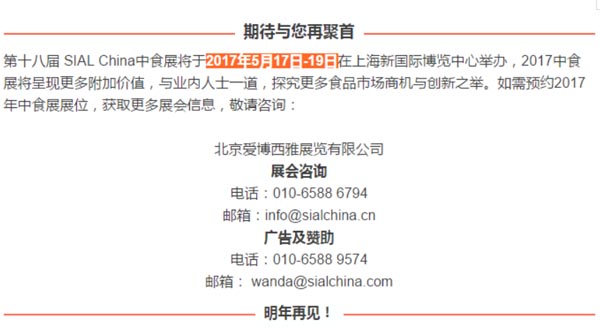 首页展会资讯展会新闻 展会新闻 专业观众|76,986专业观众成就中食展成为亚洲食品与饮料第一大展 中国糖酒网 2017-02-24 16:58 展会新闻 导语 2017年了,距离第十八届SIAL China中食展开展的日子又近了一些。 大家是否还记得2016年展会的盛况? 导语 2017年了,距离第十八届SIAL China中食展开展的日子又近了一些。 大家是否还记得2016年展会的盛况?单日参观人数达到3.5万人次,总参观人数达到76986人,刷新历史记录。 那么,这3.5万人次的专业观众都是怎么构成的呢? 上一篇【糖酒会指南】手机端免费发布产品:预热春糖 提前入驻糖酒会!2017成都春糖预热开始!各位展馆与酒店参展商,请尽快手机登陆糖酒会指南,让经销商现在就看到你! 上一篇展会现场 | 100%中奖率的幸运大抽奖,点燃中食展展会现场导语 中食展不仅召集全球食品和饮料全领域的展商、参展团来到中国上海进行展示和推介,更在展会期间,为专 相关文章 2021上海国际食品和饮料博览会,春耕·冬食与您年末共聚美食博览 第20届SIAL China中食展5月14日启幕 2018第13届山西糖酒会8月在太原煤博馆举办 2018 第十九届SIAL China中国国际食品和饮料展览会盛大开幕! SIAL China中食展邀您5月赴沪纵览全球美味 2018年SIAL China中食展专业观众参观申请正式启动! 2018 SIAL China中食展观众预登记平台正式开启 2018 SIAL China中食展郑州发布会召开 酒及高端饮品馆: 喝的好是一种艺术 SIAL China中食展:全方位招商正式启动,食品饮料国际舞台不容错