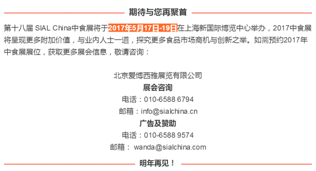 首页展会资讯展会新闻 展会新闻 观展指南 | 申请参加2017年SIAL China中食展只需这几步 中国糖酒网 2017-02-24 17:36 展会新闻 导语 申请参加2017年第十八届SIAL China中食展,首先需要线上申请成为专业观众,方法很简单: 1. 登录PC端 导语 申请参加2017年第十八届SIAL China中食展,首先需要线上申请成为专业观众,方法很简单: 1. 登录PC端中食展官方网站; 2. 直接点开此公众号菜单右侧观众服务; 几步简单操作即可申请成为2017年第十八届SIAL China中食展的专业观众。 上一篇三载相伴,SIAL China中食展与黑龙江再盼砥砺前行2017年1月13日,新年伊始,第十八届中国国际食品和饮料展览会(SIAL China中食展)在冰城哈尔滨举办了2017 上一篇主宾国 | 阿根廷食品-自然界的翘楚导语 阿根廷拥有世界第八的国土面积,享有得天独厚的自然资源,是世界的粮仓和肉库!今年,在5月17-19日开 相关文章 2018年SIAL China中食展专业观众参观申请正式启动! 企业为什么要参加订货会,还一定要参加仁创举办的! 5月6日邀您参加2017葡萄酒行业实战营销峰会 观展指南 | 申请成为中食展专业观众只需这几步 上海生物发酵展邀您参加-2016发酵培养基应用与发展技术论坛 关于组织参加“2016上海进出口食品与饮料展览会”的通知 广东朝辉参加国际酒店用品展 广东朝辉参加国际酒店用品展 美轩家具已报名参加国际酒店用品展 为何参加安徽国际糖酒食品交易会?