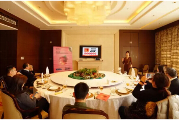 北京爱博西雅展览有限公司市场总监巴雯女士介绍中食展概况并答记者问