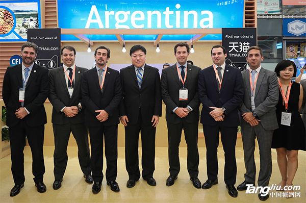 天猫食品总经理方外(左四)与阿根廷酒业协会合影