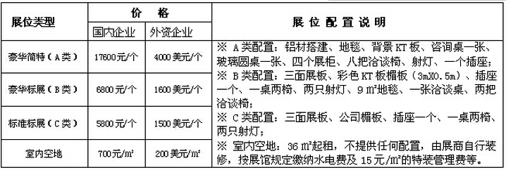 1、展位费用:(标准展位3米*3米=9平米,双开口展位另加收1000元人民币)
