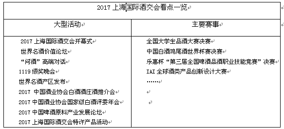 2017年10月23日,2017上海国际酒交会组委会在上海西郊宾馆翠园厅隆重召开新闻发布会,宣布由中国酒业协会主办,中企万博联合主办的“2017上海国际酒交会”将于 2017年11 月19 日-21日在上海虹桥国家会展中心举行。此次展会以”世界名酒·共享荣耀”为主题,以打造全世界最著名、最有影响力的顶级国际精品酒展为目标,是一场与会嘉宾规格高,参展商影响力大,参观人流量大的酒业盛会。