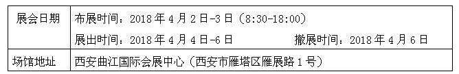 展出时间:2018年4月4日-6日 撤展时间:2018年4月6日